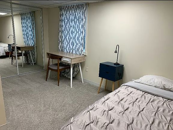 This is beautiful ground floor unit with separate entrance. The apartment includes a full kitchen, with electric stove, oven, and dishwasher as well as a washing machine and dryer. The open living room leads to a separate cozy bedroom with a full ensuite bathroom. The living space gets ample natural light during the day, but is dark and quiet at night.