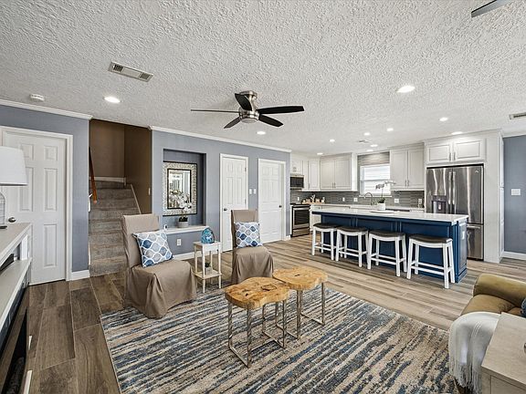 This stunning canal front home features 3/4 bedrooms, 2.5 baths, and a beautifully updated layout. The kitchen, remodeled in 2020, boasts reverse osmosis water, a pot filler, new appliances, island with breakfast bar, quartz countertops and plenty of soft close drawers and cabinets for storage. The oversized laundry room includes a large walk-in pantry and sink. The primary bedroom upstairs offers an ensuite bathroom and spacious closet, with an additional room for an office and a room that can be used as a crafting space or as a 4th bedroom. There are so many amenities that make this home special such as a cargo lift, boat lift, platform lift for the kayaks, tiki bar, storm shutters, storage unit for fishing tackle, spacious garage with 10' wide x 9' tall doors-great for oversized trucks and toys plus so much more! Recent updates: roof (2023), two A/C units (2021), exterior paint (2024). Enjoy the perfect blend of style and functionality in this meticulously maintained home.