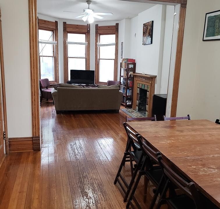 Beautiful brick Victorian building Built-in 1895 lovingly restored, original wood work restored. Apartment move in is flexible Oct up to Nov 1 Large living Room large dining Room large kitchen. Two washer's two dryers in basement coin operated. Dishwasher parking spot available. One and a 1/2 blocks from Paulina L stop Brown line. In the heart of Roscoe village across the street from the Roscoe village lofts. 6 flat building half a floor up. Triple Bay windows lots of Sun. Move in is flexible mid October or November 1st. Tenants bought a condo letting them out of their lease their closing is October 8th. Tenant pays for gas and electric landlord pays water garbage collection