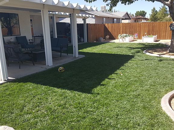 MUST SEE! Come check out this AMAZINGLY CUTE 4 bed 2 bath home with DETACHED GARAGE AND OFFICE! Front yard is FULLY FENCED with some landscaping with irrigation system making an ideal place to spend some time on those nice summers nights. Once you walk through the front door you won't want to leave, as you enter your spacious, FULLY TILED living room with VAULTED CEILINGS, CEILING FAN & FIREPLACE and recessed shelving! Beautiful kitchen features NEWLY painted cabinets, lots of storage, under mounted farmhouse style sink, quartz countertops, NEW light Fixture, breakfast nook and dining room BAY window allows EXTRA space for gatherings and family meals. ALL NEW CARPET, PRE-HUNG DOORS and WARDROBE SLIDING DOORS in Bedrooms, no closet in 4th bedroom but can be used as an OFFICE! CEILING FANS in all bedrooms! NEW VANITY'S w/MIRRORS and PRE-HUNG DOORS in bathrooms. Master bath features FULLY TILED stand up shower. FRENCH DOORS lead you out to your beautiful COVERED PATIO with plenty of space for outdoor living furniture and BBQS. This backyard has irrigation system that also has a drip system for two raised gardens, mature trees with lots of SHADE and is FULLY FENCED with a DOG RUN around the back perimeter. To top this home off, you have a LONG CONCRETED SIDE DRIVEWAY, perfect for RV's and all TOYS, which leads you to your very own 800 sqft fully finished DETACHED GARAGE with BACK OFFICE! Perfect for anyone who has their own business! Come check it out before its gone!