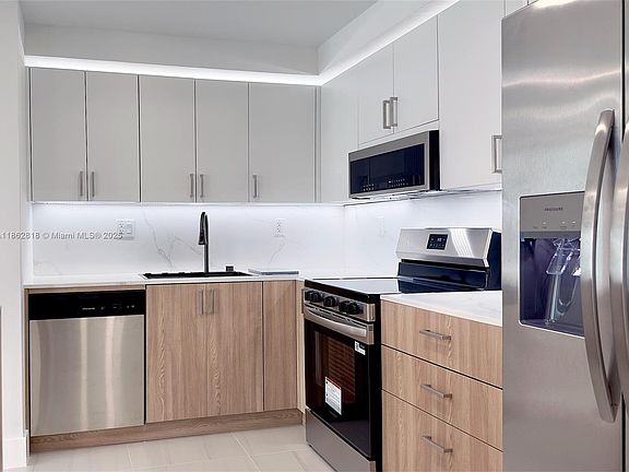 1210 Biscayne Cove unit, completely renovated and brand new! This unit has never been used since its remodel. It features two spacious bedrooms and two bathrooms, along with new porcelain floors and LED lighting throughout. The ultramodern kitchen and bathrooms are a highlight. The building is full of amenities and overlooks one of the Intracoastal lakes. Please note that the complex's exterior is currently being remodeled, with an expected completion soon. There may be some construction noise from Monday to Friday, between 9 a.m. and 4 p.m.