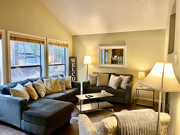 Picture-perfect cabin in Sunriver! Soaring vaulted ceilings welcome you inside where a story of rustic & modern unfold. Guests will love the comfy beds, baths, & amenities! 3-bed, 2-bath, private Primary Bedroom & bath on main, 2 separate Bedrooms with a spacious bonus loft living area, and elegant modern full bath up. There are no shortage of spaces to unwind! Kitchen comes well appointed with slab granite countertops, center cooktop island, & breakfast bar seating. Light & airy, the open-floor concept was built to entertain with a wall of windows flooding the home with natural light. Nothing beats grilling on the back deck, enjoying sips of coffee on the front deck, relaxing in a private secluded setting in the hot tub, or cozy up with a book next to the fireplace. Live life wide open in a home that takes full advantage of Sunriver's endless adventures. SHARC & Sunriver Village is a short walk or bike ride away. Add'l upgrades include invisible fence, Roof '21, upstairs bath '22.