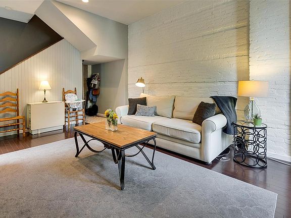 Location Location! This nicely updated 2 bed, 1.5 bath fee-simple townhome is located in highly desirable Lafayette Square. Upon entering this home you will immediately notice the beautiful wood flrs on the main level & 9 ft ceilings. Updated kitchen w/ white cabinets, granite counters, subway tile backsplash, & newer stainless steel appliances. Spacious living room w/ huge windows and brick accent wall. Half bath located off of the kitchen and a main floor laundry area as well (note: combo washer / dryer unit to stay). Upstairs you will find two bedrooms & an updated full bath. Master bedroom features a walk in closet and an exposed brick accent wall. Gorgeous outdoor entertaining area and fenced yard w/ access to the unit's unfinished basement. This home has an assigned spot in back and street parking in front. This is the perfect location for anyone looking to be able to walk to local food, parks, and entertainment. Located only minutes from Downtown & hwy access. Must see!