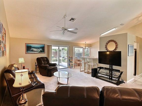 Check out this meticulously maintained CBS 3/2/2 with nice open floor plan, cathedral ceilings, large screened porch, gorgeous backyard w/large shed. Full storm shutters. A very comfortable home, could use some updates, however is super clean, priced accordingly. Voluntary community pool. Current tenant lease ends 9/30, close now & keep tenant, occupancy after 10/1.