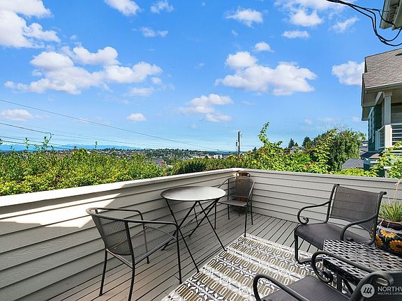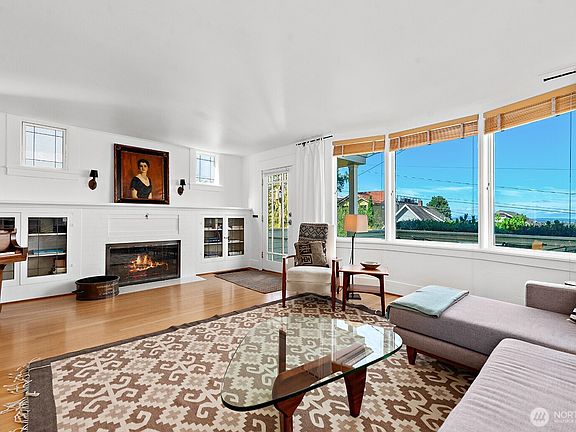 Light, bright & above it all this 1906 Craftsman features a light-filled open concept tastefully updated to contemporary standards. 3 bedrooms & 2 baths on a lushly landscaped lot with an unobstructed view from a wall of western windows to the Olympics & partial Elliott Bay views. Gorgeous hardwood floors throughout compliment the period detail of mantled fireplace & built-in bookcases typical of this vintage. The thoughtful 3 point plan of range-frig-sink will save steps.There is ample prep, cupboard & cabinet space here to please the chef. The primary bedroom & bath sits quietly at the back of the house looking out over the gardens, with two more guest bedrooms serving as office or daybed. Here you'll enjoy outdoor living all summer long!