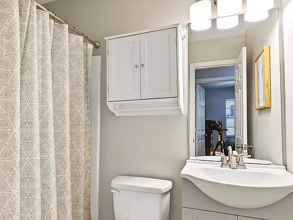Private, unfurnished room with access to a bathroom shared with 2 other renters. Room contains a closet, ceiling fan, and windows.
