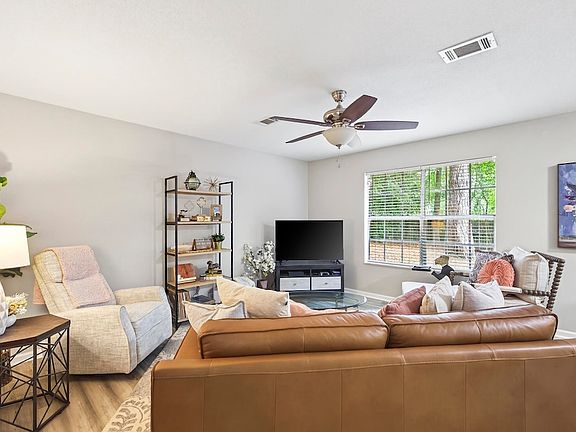 Private, furnished room with access to a bathroom shared with 2 other renters. Room contains a closet, ceiling fan, and windows. Furniture includes, bed frame, mattress, desk, nightstand, and dresser.