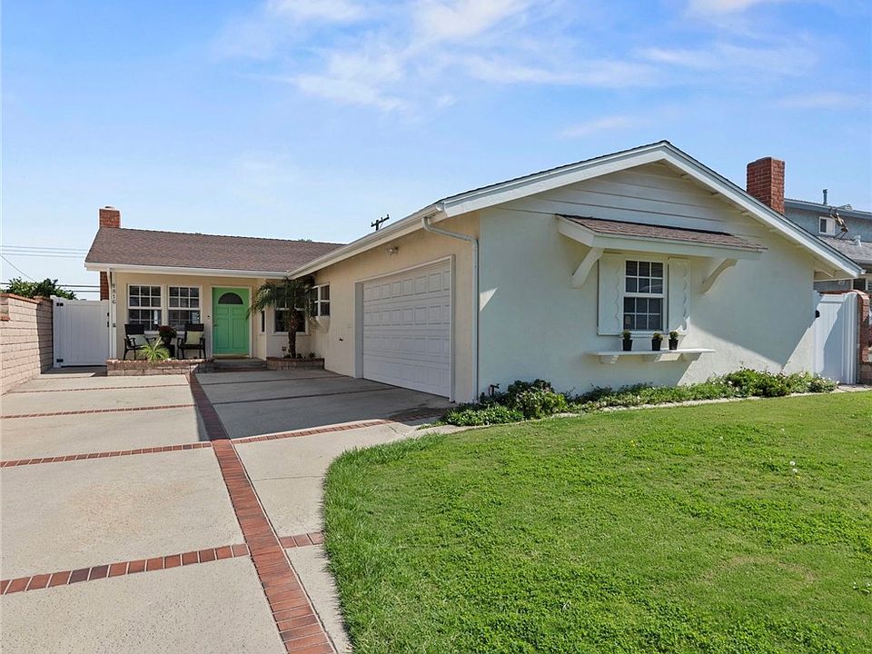 Back on the Market! Charming home that is walking distance to the award winning Taper Elementary School. Great condition with distressed hardwood floors, newer blinds, crown molding, smooth ceilings, brick fireplace, bonus room off living room, new deck and fence, double paned upgraded windows, recessed lighting, new ceiling fans, recently remodeled bathrooms, new water heater and HVAC. Primary bedroom has closet organizers and private bath. Spacious kitchen with wood cabinets and tile counters, new faucet plus soap dispenser and upgraded appliances. Walking distance to park, close to shopping, restaurants and freeway. Fantastic home that is ready to move into!