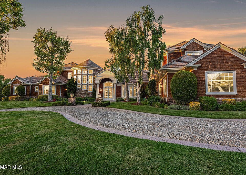 Welcome to a one-of-a-kind architectural dream home where East Coast charm meets California luxury. This expansive Shingle Style estate is set behind gates and rests on a coveted corner lot spanning over an acre of perfectly manicured grounds. A stately half-circle driveway that offers a stunning entrance and showcases the homes grand curb appeal.
