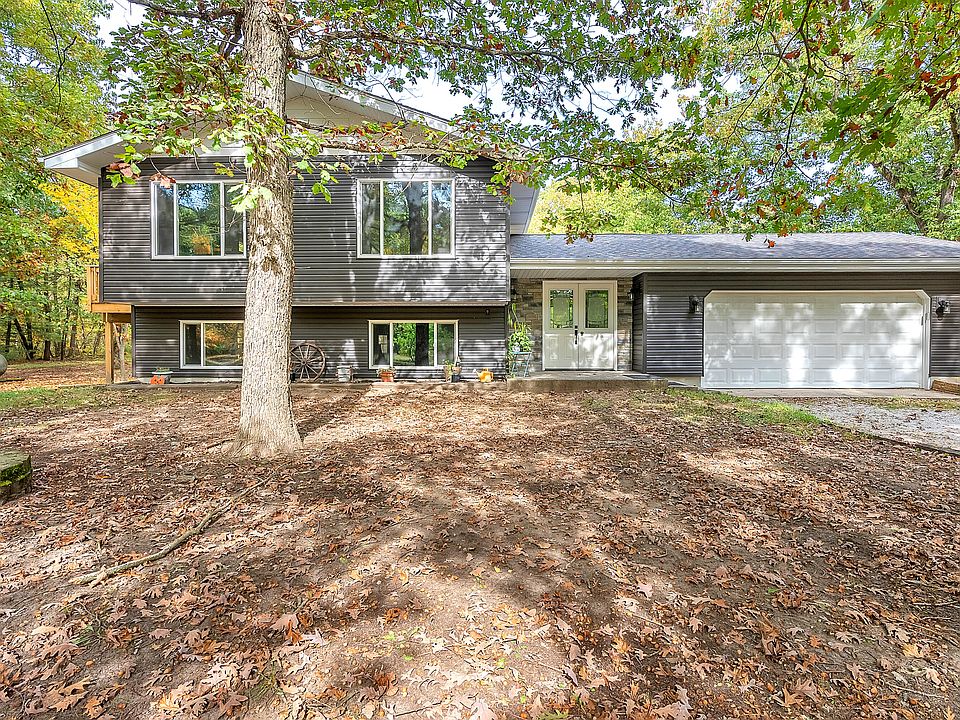 Discover country living with modern updates! This beautifully refreshed 3-bed, 2-bath home sits on a serene partially wooded 3-acre lot, offering privacy, space, and the perfect touch of nature. Step inside to find fresh new finishes throughout, including new windows, vinyl siding, stone accents, carpet, soffit, fascia, gutters, and a brand-new deck off the kitchen --all completed in 2025. The open and functional layout makes this home ideal for both everyday living and entertaining. Outside, you'll love the peaceful setting surrounded by mature trees, plus the convenience of a 24x24 pole barn, perfect for storage, hobbies, or extra parking. Whether you're relaxing on the deck or exploring your acreage, this property combines modern comfort with country charm.