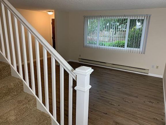 This 2 bedroom/2 bathroom townhouse has been beautifully remodeled and updated. Practically everything is new, from floor to ceiling! OPEN HOUSE THIS WEEKEND: January 25, 2020, 10 AM to 2 PM, or e-mail us for an appointment. You will not want to miss out on the opportunity to call this gorgeous 1,100 sq. foot townhouse "home". The kitchen has been fully remodeled with new stainless steel appliances, sink and countertops. The bathrooms have been updated with new countertops, fixtures, and a new soaking tub upstairs. There is a hook-up for a full-size washer and dryer inside the unit. The spacious master bedroom has two large closets. The entire townhouse has beautiful vinyl flooring throughout in the living room, kitchen and bathrooms, and brand new wall-to-wall carpet elsewhere. The walls and ceilings are freshly painted. There is LED lighting throughout, and Energy-Star windows. It also has a private back deck - perfect for BBQs in the summer. This townhouse is in a four-unit building with a secluded feel, due to its location and fencing. There are two parking spaces per unit, with lots of street parking for guests. The location is in a desirable neighborhood in Sumner, around the corner from Seibenthaler Park. The location is convenient to downtown Sumner, and also, Auburn, Puyallup, Edgewood, Federal Way, Tacoma and JBLM. It is close to I-167 and I-410 freeways. It is 1.5 miles from the new Gordon Family YMCA. For commuters, it is 1.1 miles from the Sumner/Sounder Park & Ride to Seattle and Lakewood and all stops in between. Water/Sewer/Garbage/Parking is INCLUDED with rent; 1-year lease required. Smoking is not allowed inside. Cats OK with $200 security deposit and additional $25 per month. There is a $49 application fee for credit, employment, and criminal background check. The standard security deposit is $900. An additional security deposit may be required depending on credit. Give us a call or send us an e-mail to check out this great find in Sumner!