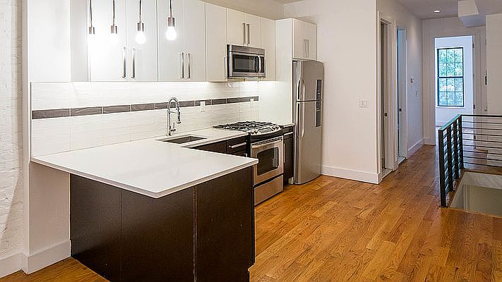 Modern kitchen with huge Island - Great size living room - 3 good size bedrooms - all have windows and closets - NOBODY GETS THE BAD ROOM - HUGE basement with the potential of easily adding 2 additional bedrooms - Designer bathrooms.... with deep soaking tub.... Totally brand new - awesome modern designs, and vintage designed common areas. Pays to check out... Wood Cobble stone looking floors(Reclaimed ceiling Joists) FREE LAUNDRY IN THE BASEMENT High Ceilings Hardwood floors Exposed brick Central A/C Video Intercom Laundry in building Outdoor Space Shared backyard Eat In Kitchen Stainless Steel Appliances Dishwasher Built in microwave Stone countertops