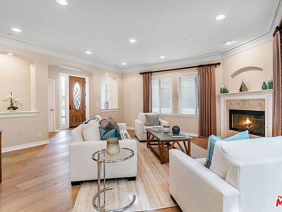 Sophisticated and beautifully appointed rear freestanding 2-on-a-lot home nestled in a wonderfully convenient location near Huntington Parkette, with easy access to all South Bay and Manhattan Beach attractions! The comfortable and inviting residence features central AC and heat throughout. Gorgeous wide-plank wood flooring graces the entertaining rooms. The luxurious living room boasts a cozy fireplace and opens out to a private custom patio with fireplace feature wall. A formal dining area adjoins the open gourmet kitchen with stainless steel appliances, granite countertops, and abundant cabinet space. The sumptuous master suite features a fireplace, vaulted ceilings with fan, large walk-in closet, additional seating area, and spa-like bath with double vanity, soaking tub, and separate shower. Additional bedrooms offer flexibility for guests/ kids, home office, gym, or playroom space. Recessed lights, coved ceilings, crown molding, upstairs laundry room, and 2-car attached garage.