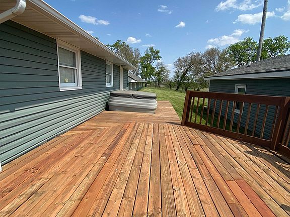 Acreage on road that ends at a level B so the country traffic is low at this 1.9 acre, four bedroom house with bonus two bed, one bath rental or recreational house. The two car attached garage leads into the family room of the split level home. The sunken kitchen and living room boasts a fireplace that is ducted to heat the entire home. New forced air heat and ac was installed in 2021 (the electric heat units remain in the home but the entire house is heated now with forced air) and bathroom remodeled with Bertch cabinets and onyx low profile base shower with ramp. Spend your summer evenings on the back deck grilling and enjoying the country view. Only five miles from town, this is the house you have been waiting for, close to town but with no close neighbors.