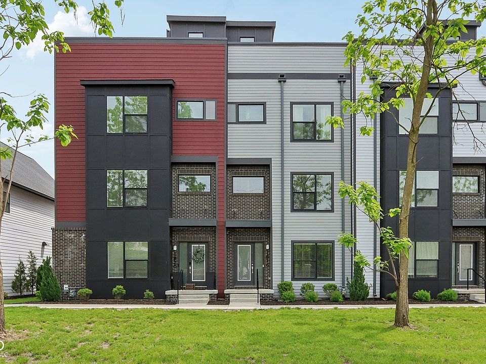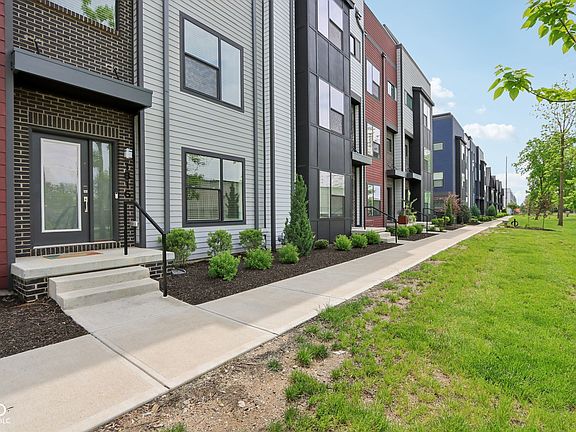 If you're looking for a low maintenance lifestyle in a perfect downtown location, look no further. Step into this multi-level property on the ground floor to find a small foyer and additional family room living space adjacent to the rear load two car garage. Head upstairs to find the main level of the property. The kitchen features a large island that is perfect for entertaining and is equipped with modern stainless steel appliances. Adjacent to the kitchen is a dining area and light filled great room and conveniently located half bath. Moving upstairs to the third level, you'll find two bedrooms, a laundry closet and two full baths. The primary bedroom is a true owners suite with a spacious shower, a well-designed walk-in closet, and lots of natural light. Keep heading towards the sky to the fourth level to find a small loft with wet bar and a large rooftop deck with skyline views that is perfect for entertaining. Embrace the lively lifestyle of this community with a dog park, perfectly situated on the Monon Trail for easy access to all that downtown Indy and the Mass Ave area have to offer! Come take a look today.