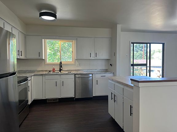 This entire home has NEW paint, NEW lighting & NEW flooring...a total refresh of 1,824 sq ft. Enjoy the updated upper-level - the kitchen has been opened up and now blends into the open-concept layout with the dining and living room areas. Butcher block countertop installed on the center island, coupled with painted cabinets, all new hardware, and stainless steel appliances. All (4) bedrooms have excellent natural light and ample closet space in addition to the new lighting fixtures and new carpet. Keep reading...there's more! TWO recently renovated bathrooms, a fresh, clean laundry space and a large downstairs family room area. The exterior of the house and the detached garage, also have NEW paint, as well as a new garage roof recently completed