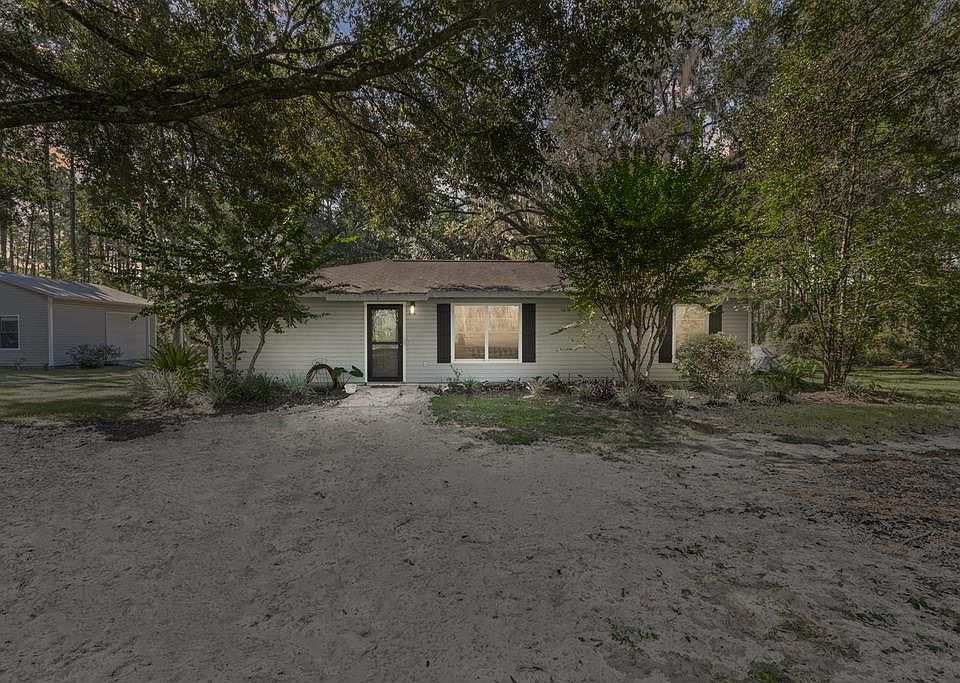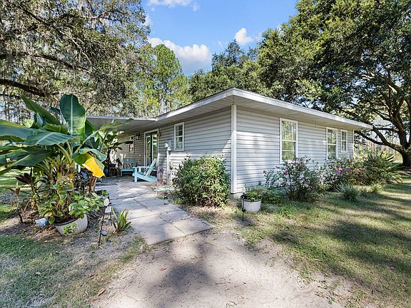 Welcome to this charming 3-bedroom, 2-bath ranch-style home nestled on a picturesque 5.33-acre wooded lot—offering peace, privacy, and practicality in equal measure. Built in 1997, this 1,248 square foot residence is thoughtfully designed for comfortable rural living, with updates and features that make everyday life both easy and enjoyable. Inside, you'll find a warm and open floor plan with vaulted ceilings, luxury vinyl plank flooring, and abundant natural light throughout. The spacious great room flows seamlessly into a functional kitchen and dining space that includes a breakfast bar and both kitchen/dining and living/dining combos—perfect for entertaining or cozy family nights. The kitchen comes fully equipped with a refrigerator, dishwasher, stove, and convection oven. French doors open from the living area onto a covered lanai, inviting you to enjoy your morning coffee or evening breeze in a peaceful natural setting. Custom-built closets in each bedroom provide smart, stylish storage solutions that maximize space and organization. The laundry/utility room has also been upgraded with custom cabinetry and shelving, giving you added storage without sacrificing function or style. The home includes ceiling fans throughout, a programmable thermostat, and central electric heating and cooling for year-round comfort. Built on a slab foundation with frame construction and vinyl siding, the home is sturdy and low-maintenance. A shingle roof completes the classic ranch-style look. The exterior is just as impressive. The beautifully wooded 5.33-acre lot offers a perfect mix of open lawn and shaded canopy, making it ideal for gardening, raising animals, or simply relaxing in your own private retreat. Mature trees, natural landscaping, and partial woven wire fencing provide both aesthetic charm and practical use for pets or hobby farming. Whether you're dreaming of a vegetable garden, fire pit area, or just space to explore, the yard offers endless potential. A detached two-car garage/carport with side/rear entry and a permeable driveway provides plenty of parking and storage. The property sits on a private limerock road with deeded easement access and a maintenance agreement in place. Utilities include a well, septic system, and electric service from Clay Electric. Zoned Agricultural, this property offers the flexibility to suit a variety of lifestyles—from peaceful retreat to productive homestead. This is a rare opportunity to own a beautifully maintained home with acreage, custom upgrades, and room to grow in a tranquil, wooded setting. Schedule your private tour today and discover all the potential this special property has to offer.