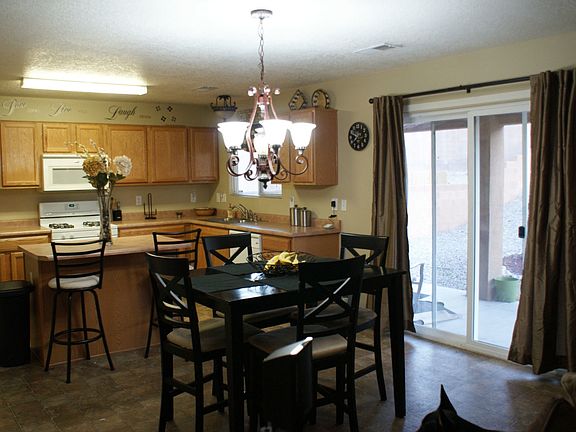 This spacious two story home has a great functional floor plan, 4 bedroom plus an additional loft for entertainment/game room/family gathering. You can have the busy city life but retreat to your own lovely home for a quiet evening. There is a covered patio, deck, and a private balcony with a cozy fenced backyard. Attractive Xeriscaped front landscaping & low maintenance backyard. Too many amenities to mention. Bright open floor plan and large eat-in kitchen with an island; generous & convenient pantries; full security system, gas range stove. House includes secured alarm system, dead bolt locks, double stainless steel kitchen sinks, energy efficient gas-fired central heat with pilotless ignition, energy efficient double pane windows, attractive oak cabintry, elegant marble vanity top, garden tub, walk- in closets New wood floor downstairs. Great Rio Rancho Schools, hiking and bike trails close by and also close to shopping center, nice restaurants & quick fast food places. Also, it is within a short drive to Albuquerque. Nice curb appeal, call now, move in & invite your friends & family over for a summer barbecue. MUST SEE property. This home will be rented quickly. CALL NOW before it is gone.