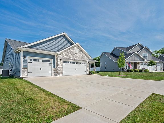 Located on one of the last available lots in Frankfort’s newest phase, this 1,930 sq ft Sangria split-ranch features 3 bedrooms, 2 full baths, and a spacious open floor plan. Highlights include a great room with 10-ft tray ceiling and gas fireplace, a gourmet kitchen with 7-ft island, quartz countertops, and stainless appliances, plus a large dining area leading to a 23x12 covered porch. The owner's suite offers a dual-sink vanity, walk-in closet connected to the laundry room, and private bath. Extras include an oversized 3-car garage, mudroom with built-in lockers, and abundant storage throughout.