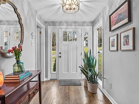 Absolutely Stunning updated home located in the Trotwood Neighborhood! Features include gorgeous hardwood flooring throughout, white kitchen with large center island, quartz countertops, tile backsplash, stainless steel appliances, Breakfast nook, built-in work desk, and large pantry, Walk-in mudroom off the entryway, spacious family room with gas fireplace and decorative brick wall with extended mantel, wainscoting, and sliding glass door to the back deck, good sized Living Room with crown molding and a large bay window, formal dining room with 2 butler pantries, and a remodeled powder room. The 2nd-floor highlights include a master bedroom suite with barn door access to the bathroom, double vanity, tile shower, and an 11x11 closet that also includes the laundry! There is a finished walkout game room with stained concrete flooring, a powder room, and access to the large level backyard that includes a fire pit and backs to a private wooded area. Just minutes to Trotwood Park!!!