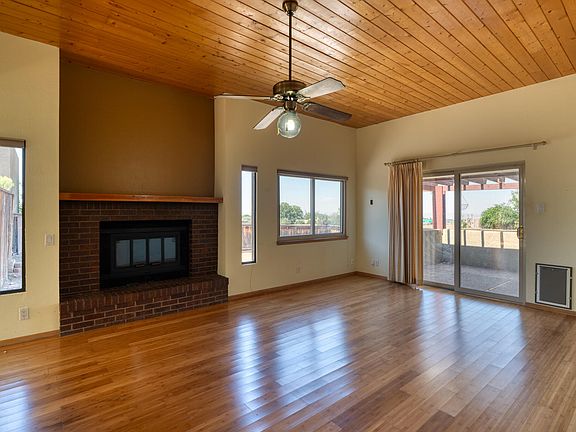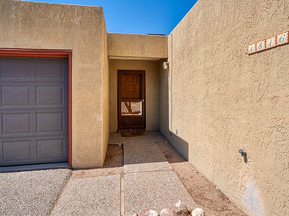 Roger Smith Patio Home East of Tramway Blvd. in Sandia Heights. Brick Floor Entry. Updated Primary Suite Bathroom with walk-in shower and glass door. Primary Bedroom walk-in closet with built-in shelving, drawers and cabinets to hang clothes. New Carpet in both Bedrooms and Hallway. Engineered Bamboo Floors in the Dining Room/Breakfast Nook and Living Room. T&G Ceiling in Living Room with Cozy wood burning fireplace. Updated Kitchen with Corian Counters, Hickory Cabinets and Stainless Steel Microwave, Dishwasher and Electric Smooth top Stove/Oven. Convenient location with easy access to Shopping, Restaurants, Sandia Peak Tram, Tramway Bike Path, Foothills Open Space for Walking/Hiking/Biking/etc.