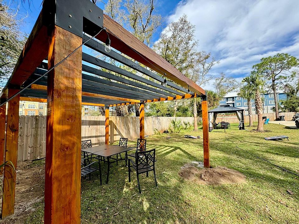 The community backyard is one of the best-kept secrets in Pensacola, with a gazebo, pergola, grill, fire pit, corn hole, volleyball net, and lots of palm trees. It's the perfect place to relax after work or enjoy a weekend with friends. Landlord provides pest control and lawn maintenance.