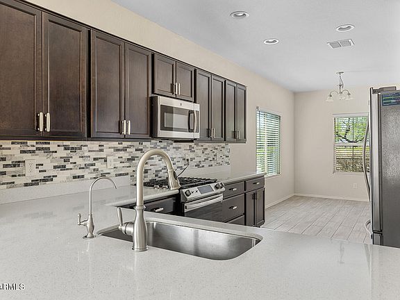 Gorgeous and gated family home in the highly desirable community of Fireside at Norterra. The home features 4 bedrooms, 2 baths with open concept living and modern touches. The spacious kitchen includes a breakfast nook, large breakfast bar, stainless steel appliances, espresso cabinets and quartz countertops. The master retreat enjoys vaulted ceilings, separate shower and tub as well as double sinks. The home is freshly painted and the backyard is newly landscaped with tasteful pavers and artificial turf. Norterra boasts tons of amenities including pools, spas, rock climbing wall, fitness center, tennis courts and playgrounds. Don't miss your opportunity to own this fabulous family home