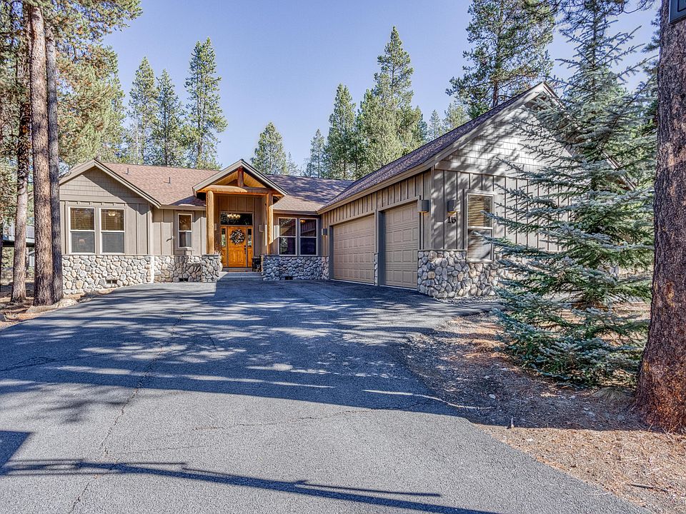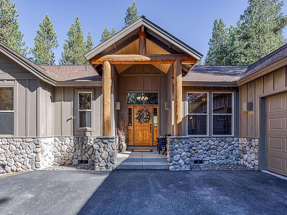 Immaculate hard to find single level in beautiful Sunriver. This wonderful lodge style home has a great floor plan that includes 4 bedrooms, 2 master suites and 2 en suites with Jack/Jill bathroom to connect. Open plan with separation of sleeping areas and hard wood floors throughout. Perfect great room with rock accented gas fireplace and kitchen island for entertaining. Bonus den that can be used as sleeping area or office. Triple car garage and recently stained deck. This home has never been rented and is ready for your Sunriver lifestyle. So many great amenities in this community.