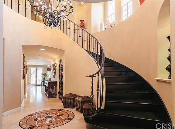 Located in the exclusive Gated Community of the Stallion Meadow Estates. This turnkey custom built home with city and mountain views, boasts 5,348 sq.ft of living area and a 19,975 sq.ft lot. There are 5 large bedrooms with each having its own private bathroom upstairs of which 1 bedroom 1 bath downstairs. This home includes an open kitchen with a very large center island overlooking the great/family room and morning room. Formal dining room has views of the spectacular circular staircase. Steps away from the formal dining and living room space is a walk-in wine cellar. Upstairs, the alluring master retreat compliments the master bedroom, offering seclusion for rest and relaxation, and a fabulous deck with valley views. The Master Bedroom has a spa-like master bath with an over-sized shower, steam room, jacuzzi tub and two large walk-in closets. There is a large bonus room that includes its own full bath that can be used as a home theater, play room or additional bedroom making it a possible 6th bedroom. This home has a surround sound system throughout the home.The lush yard includes an infinity salt water, sand bottom pool and spa with views. This large backyard space also includes a covered outdoor patio and a customized covered barbecue area with full seating, and an outdoor full bathroom. This home has a three car garage with a circular driveway and a double gated courtyard. This home is located in the Granada Hills Charter High School district.