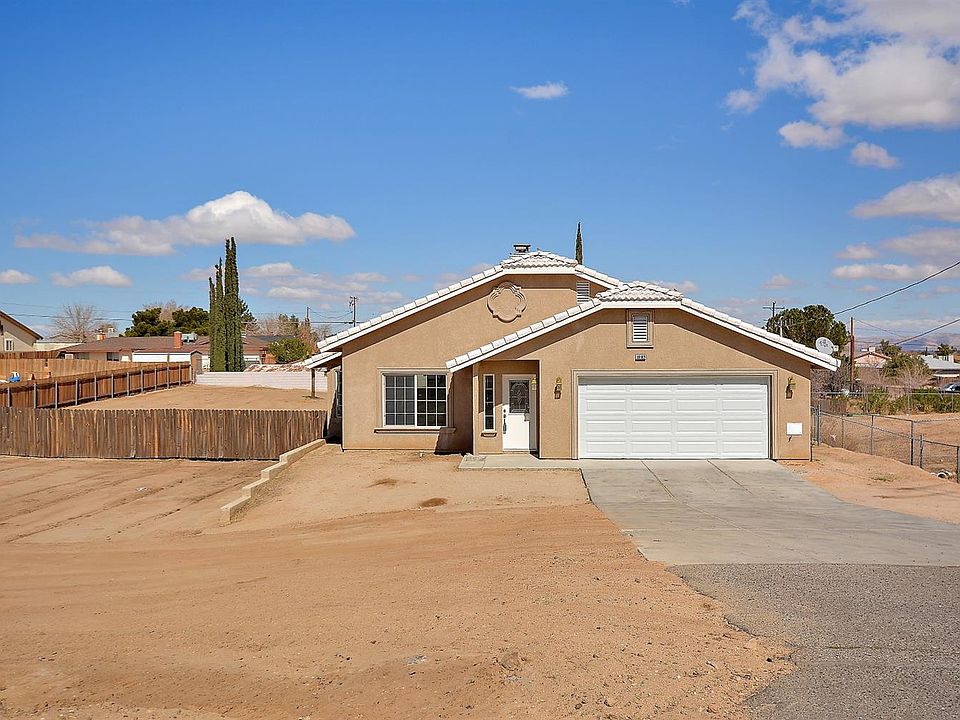 Beautiful, Like New, Turn Key Hesperia Home, Ready for YOU! 3 bed 2 bath on a acre of property. Open kitchen and living area with granite counters throughout. Wonderful natural light throughout the day and a fireplace at night to snuggle up to on those coming soon chilly nights! Large master bedroom with access to the backyard terrace, large walk in closet, master bath with generous counter space. Space for all of your toys on this Huge half acre lot which is fenced for your toys and dogs. You'll be close to Ranchero for commuting and all shopping, the golf course and restaurants.