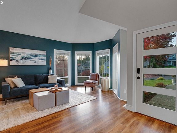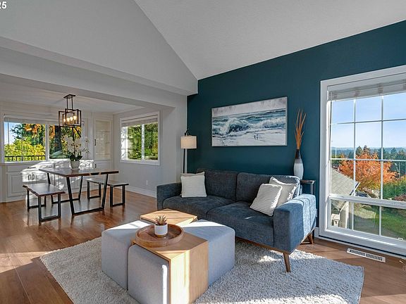 Experience stunning territorial and mountain views from this beautifully updated Beaverton home on a spacious .26-acre lot. Enjoy peace of mind with a brand-new 50-year roof (transferable warranty), new front door, and Rain Refresh exterior paint designed for minimal maintenance. Inside, the remodeled kitchen shines with quartz counters, a copper farmhouse sink, and subway tile backsplash, complemented by beautiful flooring, high ceilings, and newer light fixtures. Relax outdoors on the large TimberTech deck or private primary suite balcony, perfect for soaking in the views. The landscaped yard features a plumbed gas fire pit and low-maintenance turf in the front yard for easy upkeep. Modern comforts include a 50-amp GFCI breaker and outlet for EV charging, ample garage storage, and an updated primary bath with new fixtures, mirrors, lighting, and freshly painted cabinets. Make this exceptional Beaverton retreat yours today.