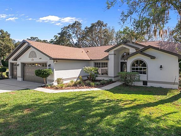 This is the one you've been waiting for! This custom home in the scenic Autumn Oaks subdivision has been fully updated this year. Featuring all-new flooring, an updated kitchen and bathrooms, fresh paint inside and out, and so many other thoughtful details, this stunning home is ready for you to move right in and enjoy the sparkling pool. From the moment you arrive, you’ll appreciate the extra parking afforded by the corner lot — not to mention the beautiful grove of trees in the backyard. Step through the double front doors into a bright, open living space with brand-new luxury vinyl plank flooring and cathedral ceilings. The updated kitchen offers stainless-steel appliances, soft-close cabinets, and quartz countertops. The primary suite provides a peaceful retreat with a luxurious en suite bathroom featuring a walk-in shower, jetted tub, dual vanities, a generous walk-in closet and linen closet. Three additional bedrooms on the opposite side of the home provide privacy and ample space, with one thoughtfully designed as an in-law suite. The hall bathroom, shared by the other two bedrooms, offers convenient pool access. The pool includes an electric heater for year-round enjoyment. Autumn Oaks is a well-established community known for its custom homes and tree-lined streets. Each home sits on at least half an acre, and while the neighborhood HOA fee is very low, it includes a wide array of amenities: tennis, pickleball, bocce, and basketball courts, plus a playground, picnic and grilling areas, restrooms, and community sidewalks with street lighting. Conveniently located on the Pasco/Hernando County line, you’ll enjoy quick access to US 19, the Suncoast Parkway, major shopping centers, restaurants, Tampa, and Tampa International Airport.
