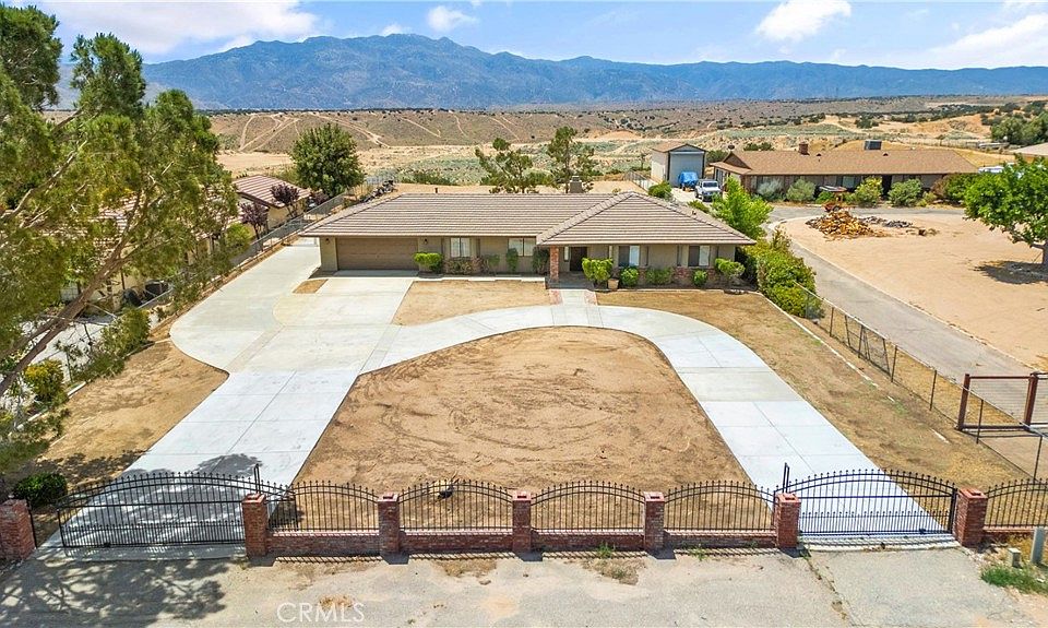 This Ranch- Style Home Sits On Nearly An Acre With Amazing Mountain Views. Gated Circular Driveway Providing Ample Space For Vehicles And RV’s. This Home Boast 2,025 Sq. Ft. Of Living Space On An Amazing Lot. Inside You Will Find A Beautiful Kitchen With an Abundant Cabinet And Counter Space. Adjacent Inside Laundry Room With Storage. Family Room With Fireplace And French Doors Leading To A Large Covered Patio-Perfect For Enjoying Those Stunning Views. Living Room Open To Dining Room. Oversized Primary Bedroom With Lots Of Natural Light. The Primary Bathroom Has Dual Sinks And A Walk-In Shower With Sky-Light. Guest Bedrooms Have Bay Windows With Built-In Cabinets. Out Back You Will Find Two Mature Trees And A Beautiful Joshua Tree (Yucca Brevifolia). And Having A Two Car Garage With One Deep Bay Approximately 28 Feet Is A Plus. Overall, This Ranch Home Offers Comfort, With Its Picturesque Views And Ample Space. A Wonderful Place To Call Home!