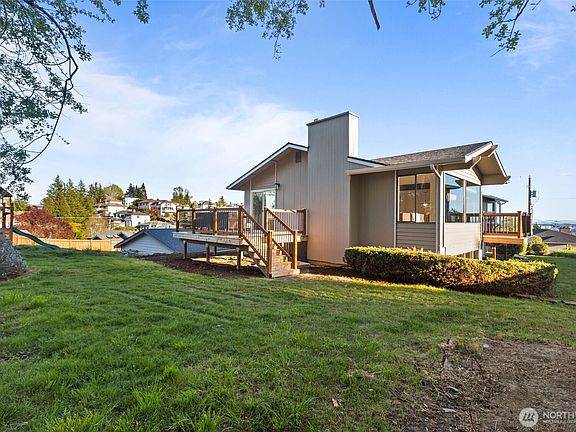 Perched on a quiet cul-de-sac in one of Tacoma’s most scenic neighborhoods, this fully updated custom home offers panoramic views of the Sound, mountains, and unforgettable sunsets from nearly every room. Bright upper level features formal living and dining areas, and brand new kitchen. New LVP throughout. Primary suite offers serenity and views, alongside a 2nd bedroom and two beautifully remodeled baths. Flexible lower level has an additional bedroom, ¾ bath, huge rec room, and a 2nd full kitchen—ideal for multigen. living, extended guests or rental income. Outside, enjoy the peace and privacy with expansive new decks to soak in the surroundings. This one-of-a-kind home delivers comfort, elegance, and jaw-dropping views—all in one!