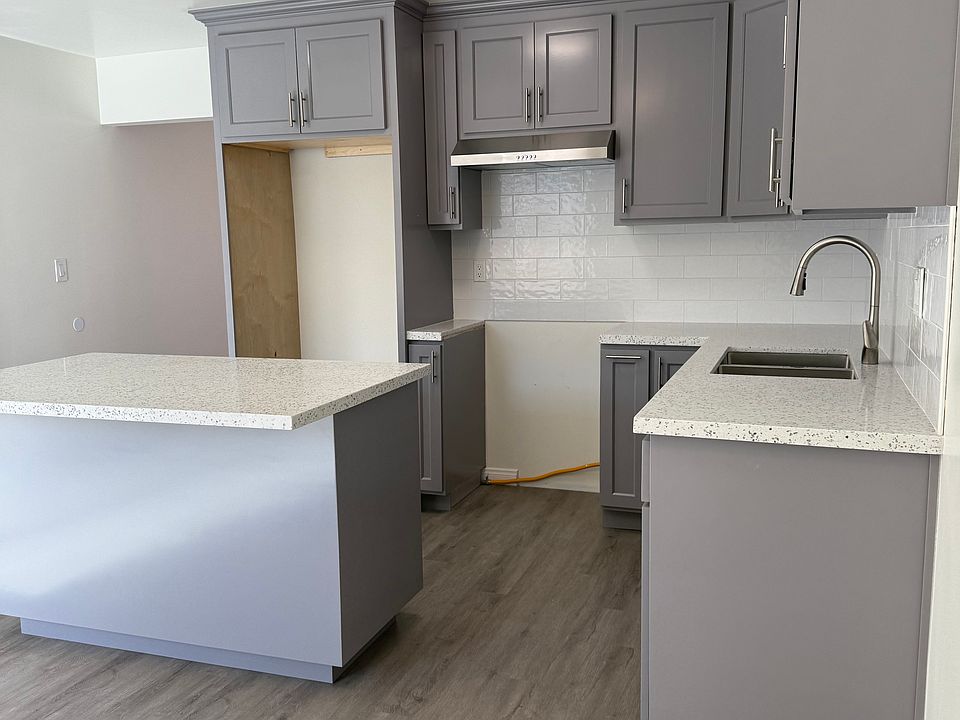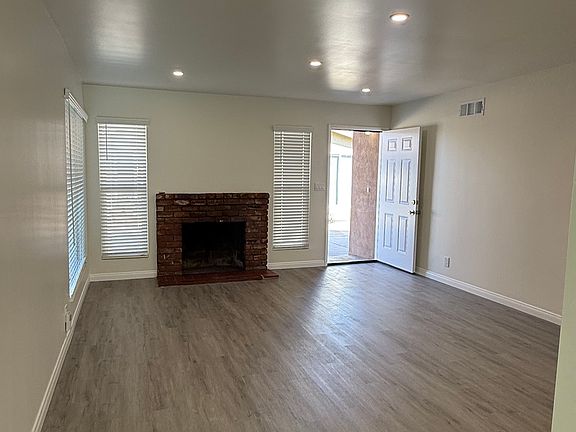 Kitchen, quartz countertops, dining room, living room, fireplace, two (2) bathrooms, one (1) bathroom, back patio, laundry room with hook-ups, one-car garage & one space behind the garage, and Central air and heater. Fully Renovated with a new kitchen and quartz countertops, paint, recessed lighting, window blinds, laminated flooring and baseboards, bathroom, closets, and many more upgrades!
