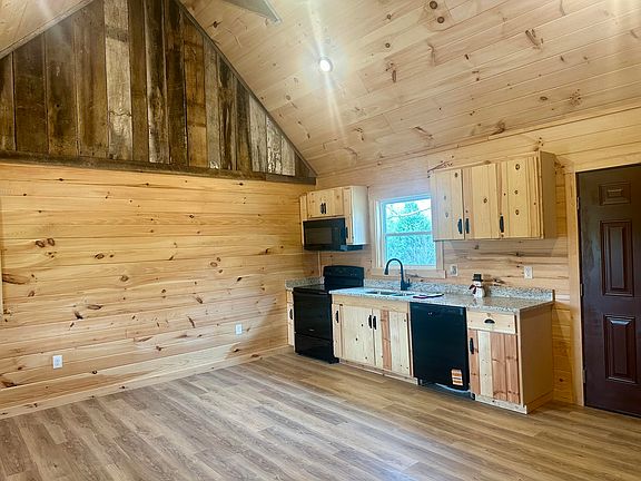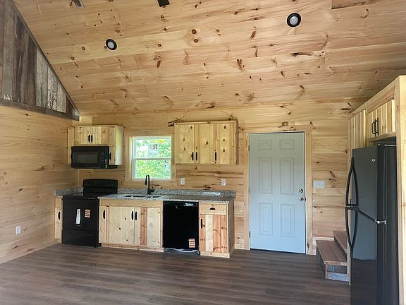Just completed Rustic Tiny Cabin Nestled on 8.4 acres backing up to woods. This unique cabin has so much character and charm! Cabin has 1 loft bedroom that overlooks main level. Kitchen/Living Room combination. Laundry area and Full Bath with Tub/shower. Kitchen has custom wood built cabinetry, granite countertop and stove, refrigerator, dishwasher and microwave. This tiny cabin retreat has 583 SF and full front porch with excellent views. Walls are hardwoods with some old rustic barn wood accent area throughout cabin. Ceiling is vaulted in living room kitchen area. There is also a campsite hook up with water hook up and 30/50 amp electric hookup. Some cleared land but lots of woods lay behind cabin with seasonal small creek. Property begins at black plank fencing and lays on right side of gravel road at gate entrance. Campsite hook up is just past cabin on the right. All of this is easily accessed. This could be a perfect get away. A couple horses are allowed in this development.