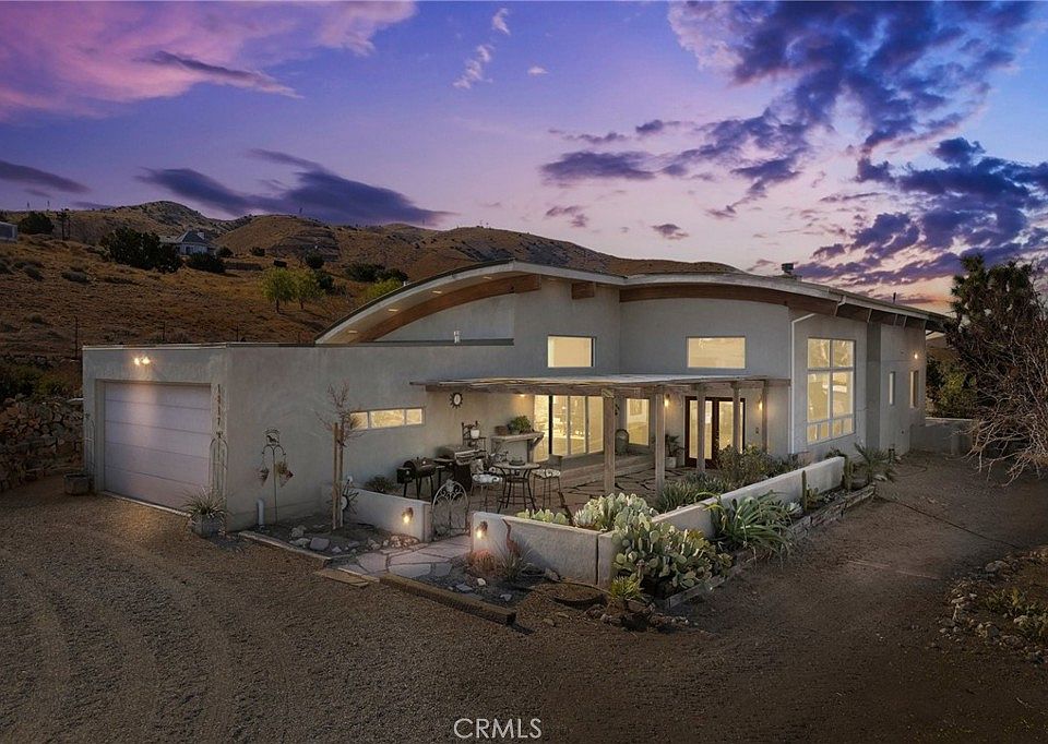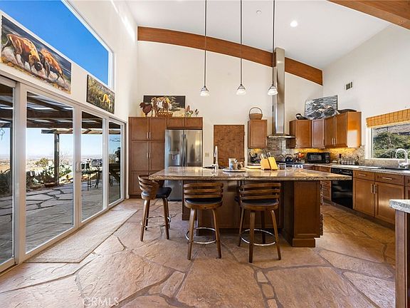 A one of a kind property. Designed & built an Architect who worked on design of the Getty Museum Expansion. 2184 Sq ft, 2 Bedrooms, 2 full baths. Large walk in closet in primary with pull down attic access offering further storage. Home is very private with 17.5 Acres, fenced with Automatic Gate. Expansive panoramic view of Antelope Valley. Expansive window in great room overlooking most of the Greater Antelope Valley and beyond.. Open concept design is absolutely perfect for entertaining. Soaring 23 ft curved beamed ceiling in living room and 20 ft ceiling in dining room and kitchen. Brazilian granite counters in kitchen with oversized 8ft granite island with prep sink. Wood framed covered courtyard with spectacular fountain. Arizona flagstone courtyard flows into the open concept living room, dining room and kitchen. Original to the house and prior to the massive expansion is original thin slat hardwood flooring in hallway and bedrooms. Wood Burning Fireplace in great room. Standing seam curved lifetime metal roof with patina that changes with sun from green to copper. Interior Fire Sprinkler System, including Garage. Utility Room w/cabinets, counter & sink, plumbed for gas or electric dryer. Attached two car Garage is insulated and drywalled. Several Shed Storage Sheds. Horse ready and room for even more. Bring your RV's too!. Plenty of space to park. Excellent well per seller with newer motor. Newer Septic and newer HVAC. Acton/Agua Dulce School District with bus service available. Come for a visit. Stay for a lifetime. Welcome Home!