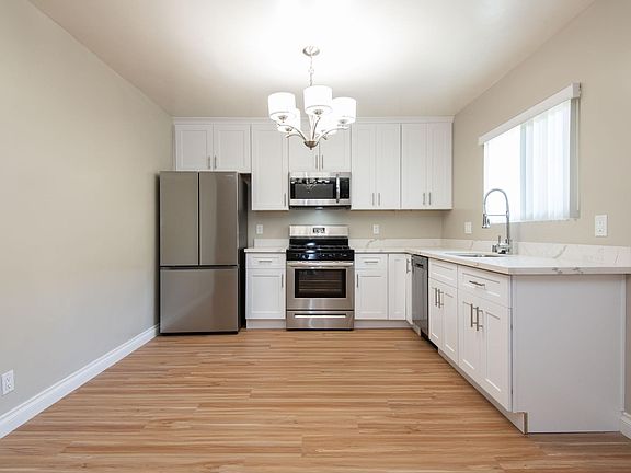 This beautifully renovated first floor, 2 bedroom 1 bath apartment home overlooks a lovely courtyard with planters that have palm trees and flowering plants. It features laminate flooring throughout and a large picture window in the living room that provides plenty of natural light. The spacious living room leads into a large dining/kitchen combo with chandelier. The large kitchen has ample cabinets that provide lots of storage with stainless steel appliances complimented by quartz countertops and a window for more natural light. The space is cooled by a powerful, wall AC. There is abundant storage in the hallway and the two bedrooms. Both bedrooms are equally sized and equipped with ceiling fans and mirrored closet doors. The fully renovated bathroom includes a vanity with a quartz counter, mirrored medicine cabinet, vanity light fixture and full shower/tub combo with quartz tiles and glass sliding doors. This is a great value and won't last for this desirable neighborhood! Nicely maintained 17-unit gated building with shared courtyard building located in a quiet West LA neighborhood that is walking distance to Santa Monica Blvd and steps away from Sawtelle/Little Osaka shops and restaurants. Recently completed earthquake retrofit improvements. Intercom entry into a nicely landscaped courtyard, assigned parking and on-site laundry facilities. Professionally managed and online rent payments available. Choice Location in charming walking friendly West L.A. neighborhood. Steps away from Sawtelle/Little Osaka and Santa Monica Blvd Shops and many shops and restaurants. Bike ride or drive to nearby Santa Monica Beaches and Mountains, Venice Beach, Westwood, Century City, Beverly Hills and Culver City. Easy Access to 10 And 405 Freeways and close to UCLA, SMC, WLAC and LAX. Terms: $2,995 12 Month Lease $2,995 Security Deposit Owner Pays for Water and Trash