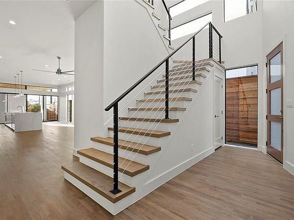 Stunning modern Single Family Attached home built by Conrad Homes. The sophisticated design and large open layout create an entertainer's dream. Gourmet kitchen with an over-sized quartz island with waterfall counters, White Oak hardwood floors, tons of natural light. 8ft sliding doors open to a large covered patio with built in gas fireplace & private backyard. Gorgeous master suite with large walk-in shower, modern soaking tub, & plenty of closet space.