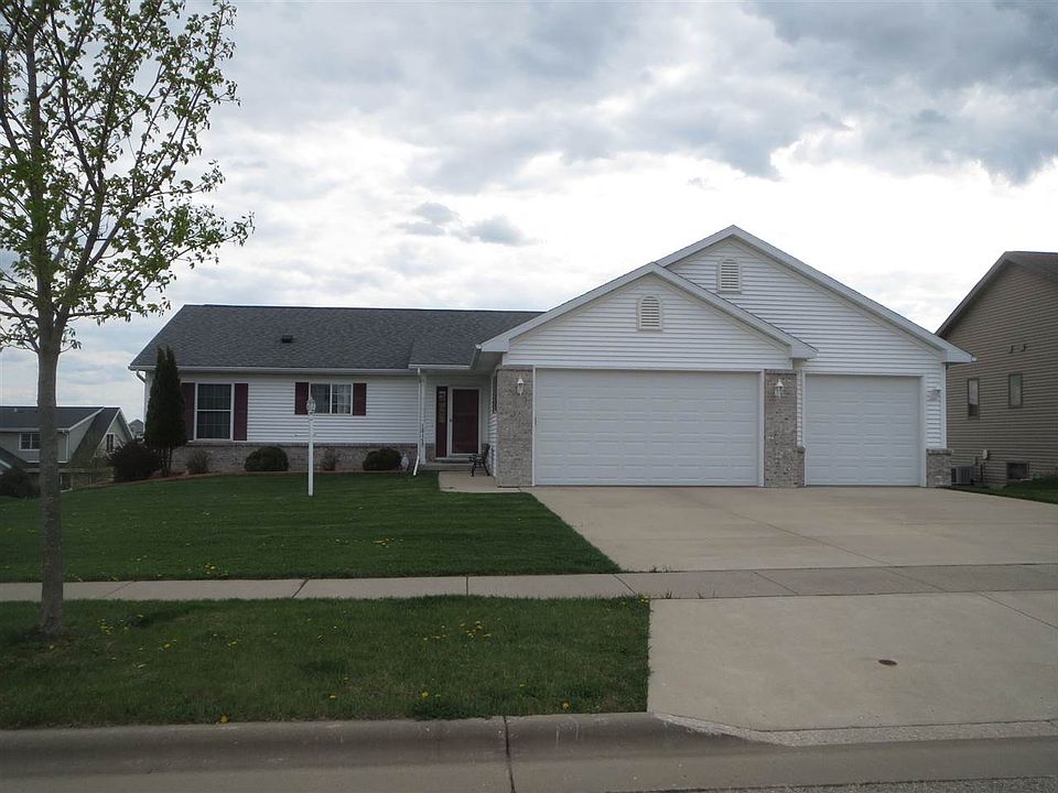 10 Year old 3 Bedroom, 2 Bath, well cared for, Ranch with vaulted ceilings in the Great Room, featuring a corner gas fireplace and Formal Dining area with a walkout to a 14x16 deck. Master Suite on one end of the house with 2 bedrooms & bath on the other end. First floor Laundry/Mud Room off the 3 car garage. Open stairway to the 24x26 Family Room, exposed with a full size window. Large storage area off the family room, with a rough-in for a 3rd bath.