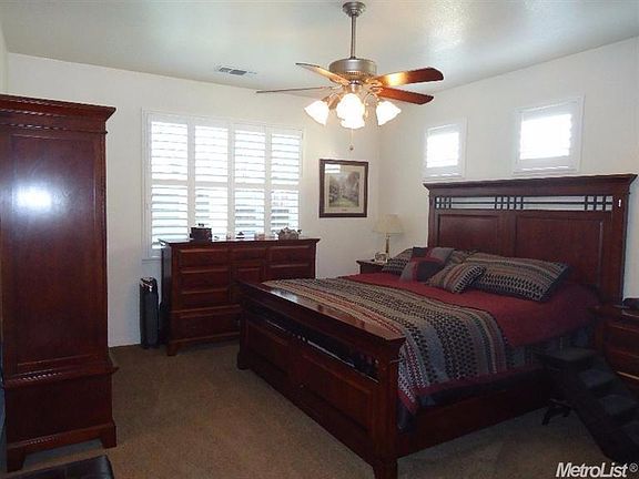 Beautifully maintained 1 story home 3 car garage. Pebble pool, solar heated, salt filtration, Zodiac electric pool cover. Covered screened patio with removable panels. Tenting on west facing windows, artificial grass in back. Master has walk in closet and Jacuzzi tub. Shutters through out. Hall bath has jetted tub, shower with tile. Tile flooring in kitchen, dining, hall, laundry room, and bathrooms. Laminate flooring in 1 bedroom. Carpet in living, master and 1 bedroom. Clean and move in ready.