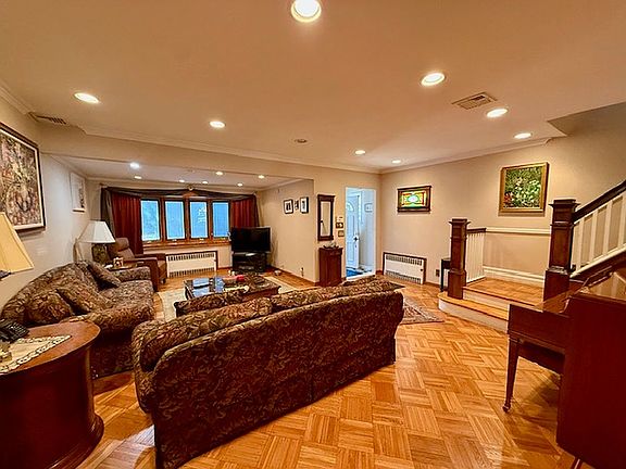 Marine Park! A true 4 Bedroom /4 Bath home in the Heart of Marine Park! This magnificent home has spared no expense! The first floor has an oversized living room, formal dining room, full kitchen, 1/2 bath, laundry area and family room. The family room opens to a rear porch and beautifully landscaped yard. The second floor has 3 nice sized bedrooms with hardwood floors and a full bath. The 4th bedroom/primary bedroom is oversized with vaulted ceilings, California type closet and its own 3/4 bath with a steam shower. There is a full finished basement with a 3/4 bath and a private driveway for 2 car parking. Marine Park is just a short distance from your new home!