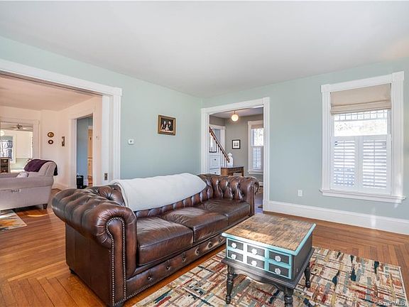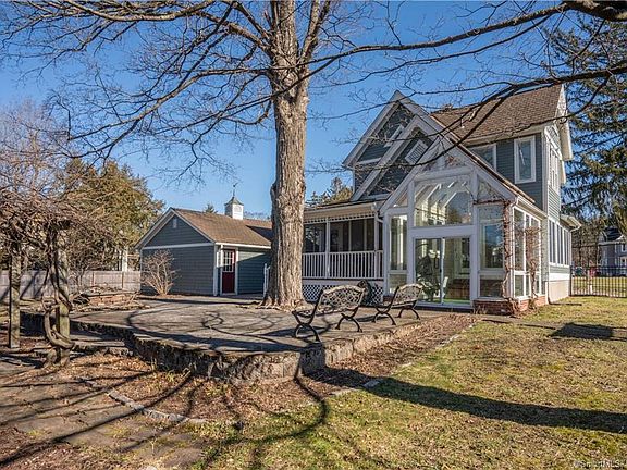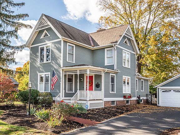 Nestled on Main Street, this Colonial home boasts a prime location, walking distance to shops, eateries, and cafes, providing the epitome of convenience. Melding historic allure with contemporary comforts, this residence presents a versatile living space that appeals to those seeking both charm and modernity. An open floor plan seamlessly connects the kitchen, family room, living room, and dining area, fostering a sense of expansiveness and unity throughout the home. Hardwood flooring graces every corner, lending a timeless touch of elegance to the interior ambiance. Outside, the well-maintained backyard beckons with a private fenced pool, a koi pond and an enclosed yard, while the addition of a greenhouse, sunroom, and patio elevate outdoor living to new heights, offering year-round opportunities for relaxation and entertainment.