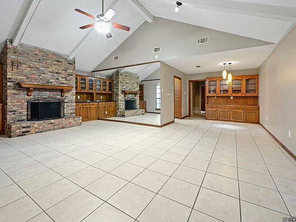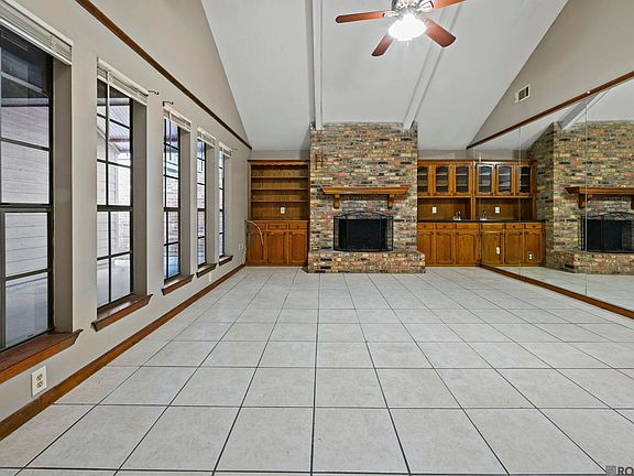 Two-car garageCustom built-insCovered patioImpressive vaulted ceilingsBeautiful classic brick fireplaceNeutral wall colors