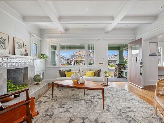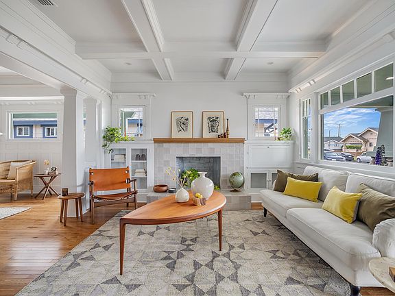 Bathed in natural light, this 1912 Craftsman home was restored with a keen eye for design and detail. Between the coffered ceilings and new oak floors lies an elegant and warm home. The living room's fireplace, flanked by original built-in cabinets, is adorned with tiles that vary in soft gray tones. The vintage windows, reminiscent of a bygone era, allow abundant natural light. The gracious dining room, adorned with wainscoting, connects to the kitchen via a large pass-through window. An ideal setting for entertaining. The cooks' kitchen and breakfast area are grand in size, color, and design. Stainless steel appliances, ample cabinets, and a farmhouse sink open seamlessly via sizeable French-style doors to a back deck and professionally landscaped yard, all set to enjoy. Two prolific orange trees provide beauty, shade, and fresh fruit. The front bedroom showcase original stained-glass windows. The primary bedroom has ample proportions and features a huge walk-in closet, an en-suite bathroom, and French doors to the rear deck and yard. The two-car garage offers a versatile space that could serve as a bonus room or be transformed into an ADU. Beyond this extraordinary residence's walls lies the vibrant, up-and-coming Vermont Square neighborhood. It borders Leimert Park on the west and is surrounded by You are surrounded by various LA cultural destinations and restaurants. Exposition Park, LA Memorial Coliseum, Banc of California Stadium, LA Live, LACMA, Galleries, the growing Leimert, West Adams, and Jefferson Park neighborhoods. You are surrounded by various LA cultural destinations and restaurants. Easy access to major freeways such as the 10, 110, and 5 and a well-connected public transportation network. The perfect mix of vintage charm, convenience, and modern updates. You'll want to call this house your home.