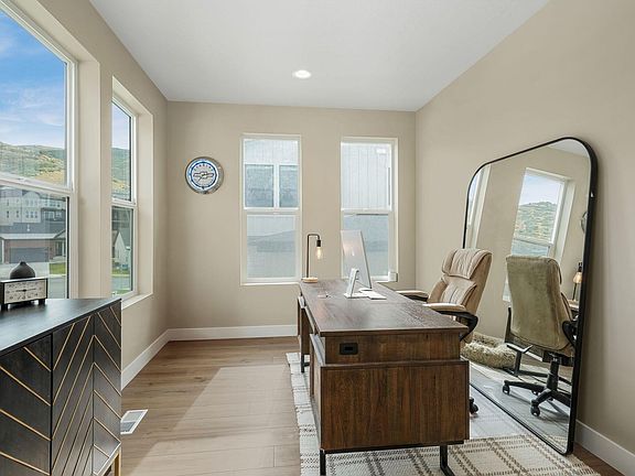 Nestled in a serene mountainside setting, this luxurious home showcases sweeping valley, mountain and lake views. $200,000 worth of upgrades! Designed both with elegance and function in mind, the floor plan includes a private office/den and expansive open living room that flows seamlessly into the gourmet kitchen, appointed with a large island, quartz countertops, high end appliances that includes double ovens and gas cooktop. The oversized primary suite offers a serene retreat with a spa like ensuite bath and spacious walk in closet. A fully finished walk out basement provides additional living space with a mother in law apartment, complete with a full kitchen, living room, bedroom, bath and laundry room. Ideal for multigenerational living. Exquisite finishes and attention to detail throughout. The backyard is fully landscaped, creating an inviting space for relaxation and entertaining. Low HOA due grant access to exceptional amenities including a clubhouse, pool, playground and more!