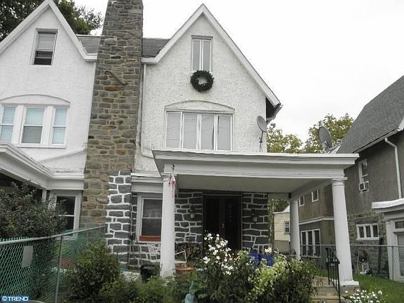 Updated and nicely landscaped twin on lovely Overbrook block. Offering large living room with working fireplace and hardwood floors; dining with hardwood floors; updated eat-in kitchen with tall maple cabinets, double sink, ceramic tile floor, exiting to side porch. 2nd level has 3 good sized bedrooms and an update bathroom. 3rd level has a full bath and one additional bedroom or could be used for study or office. Basements is finished with 1/4 bath, laundry area and access to attached 1 car garage. Front and rear are fenced. Rear driveway is shared. Gas furnace installed in 2000; hot water heater installed in 2004. Most windows have been replaced. Home is selling in 'as is' condition. Just a little TLC is needed to make this home shine. This is a short sale; all terms are subject to 3rd party approval.