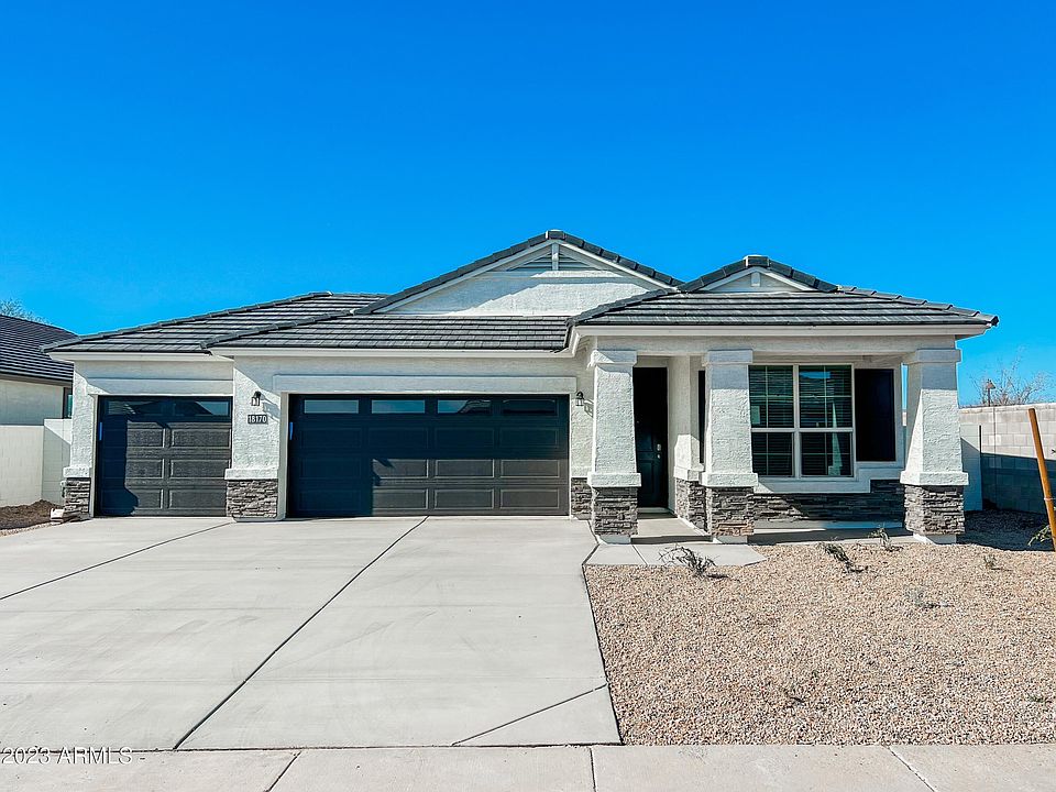 MOVE IN READY NEW BUILD!!! Ideal layout and complete package in this low maintenance, high value new build with full 3rd car garage, with epoxy flooring, and prewiring for electric vehicles. Optimal space utilization meets a pleasing aesthetic with sleek grey cabinets and white quartz countertops. 8ft interior doors, oversized 12 ft double sliding glass patio door, and upgraded farmhouse style kitchen sink. 6'x24' wood plank tile throughout the main living areas. FULL SET OF KITCHENAID STAINLESS STEEL APPLIANCES including gas range, soft water loop, & RO. Large primary suite, utility room, and walk in pantry. No major out of pocket purchases necessary as window coverings, smart home features and wifi garage all included in list price. N/S facing CORNER PRIVACY LOT!