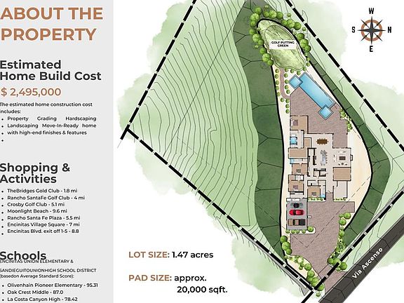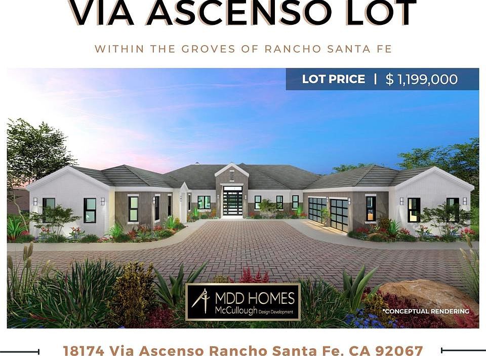 One of the last opportunities to build your dream luxury estate home in the prestigious gated Groves of Rancho Santa Fe! This stunning panoramic view lot offers space to create your dream property, with HOA guidelines possibly allowing for a main residence with resort-style backyard and two additional casitas or accessory dwellings. Nestled in the sought-after 92067 zip code, this is luxury living at its finest! Close to the esteemed Rancho Santa Fe Village this private gated community offers tennis courts and is surrounded by orange groves. All just a short drive from world-famous Del Mar Racetrack and Torrey Pines Beaches.