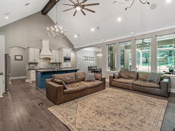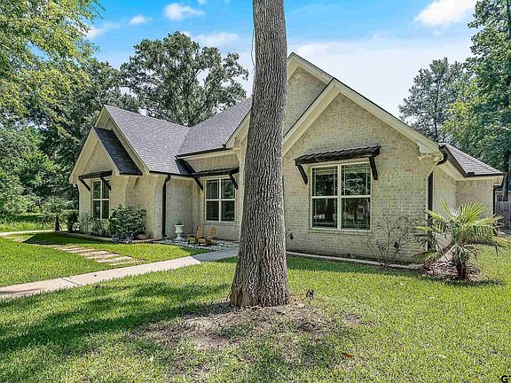 Experience stunning lake views and access on Lake Tyler East at 18177 W Lakeview Drive in Troup. This 4-bedroom, 3-bathroom home boasts vaulted ceilings, custom craftsmanship, and a well planned master split layout. The spacious open concept offers room for the entire family and friends with plenty of space for dining, or gathering around the large center island and breakfast bar, the well equipped kitchen flows seamlessly into the beautiful family room ideal for spending time with loved ones, the high ceilings and tall picture windows set the stage for this grand space centered around the fireplace creating the perfect cozy environment for relaxing. The same can be said for the outdoor space that smoothly transitions from the family room out to an expansive covered porch under beautiful vaulted ceiling, complete with multiple sitting areas, lots of space for any activity you'd like to take outdoors, topped off with a well equipped outdoor kitchen. The rest of the home offers plenty of space for the entire family, with a large primary suite with a spacious ensuite bathroom with soaker tub and walk in shower. The additional 3 bedrooms are all spacious and bright with large walk in closets, and 2 remaining full bathrooms ensure everyone has their space. This home has so much to offer, the modern luxury comforts of a dream home, the beautiful lake views from the lush manicured front lawn, the wide open yet private spacious back yard, fishing, swimming, boating on the lake, or simply enjoying the sunsets, this retreat provides tranquility and comfort you don't want to miss out on. This is your opportunity to own your own slice of paradise! *Seller has additional 1/2 acre lot attached to property they are willing to sell.